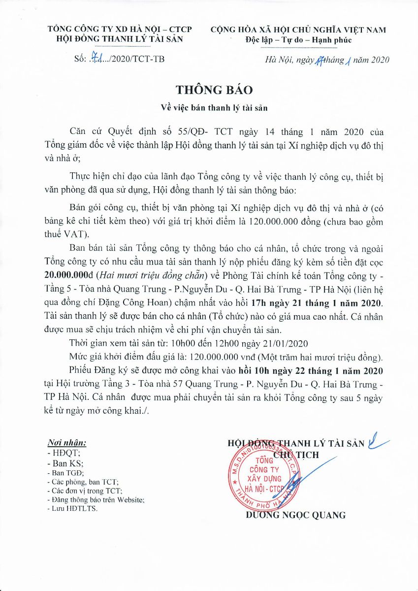 Thông báo bán thanh lý gói thiết bị, công cụ văn phòng đã qua sử dụng