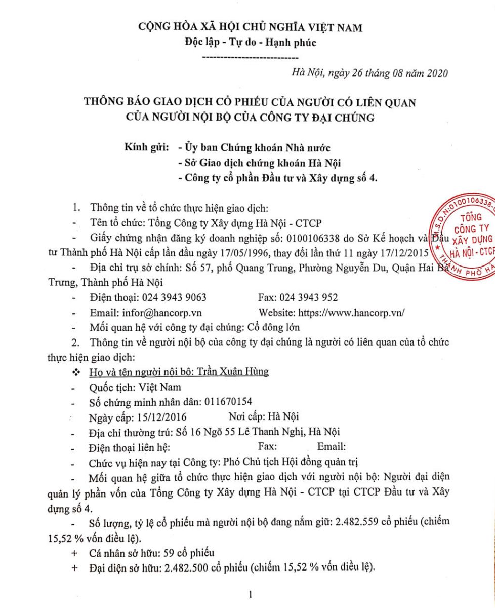 Thông báo giao dịch cổ phiếu của người có liên quan, của người nội bộ, của công ty đại chúng tại ICON4