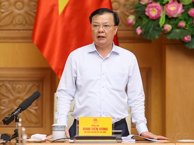 Bí thư Thành ủy Hà Nội Đinh Tiến Dũng phát biểu tại buổi làm việc. Ảnh: VGP/Nhật Bắc